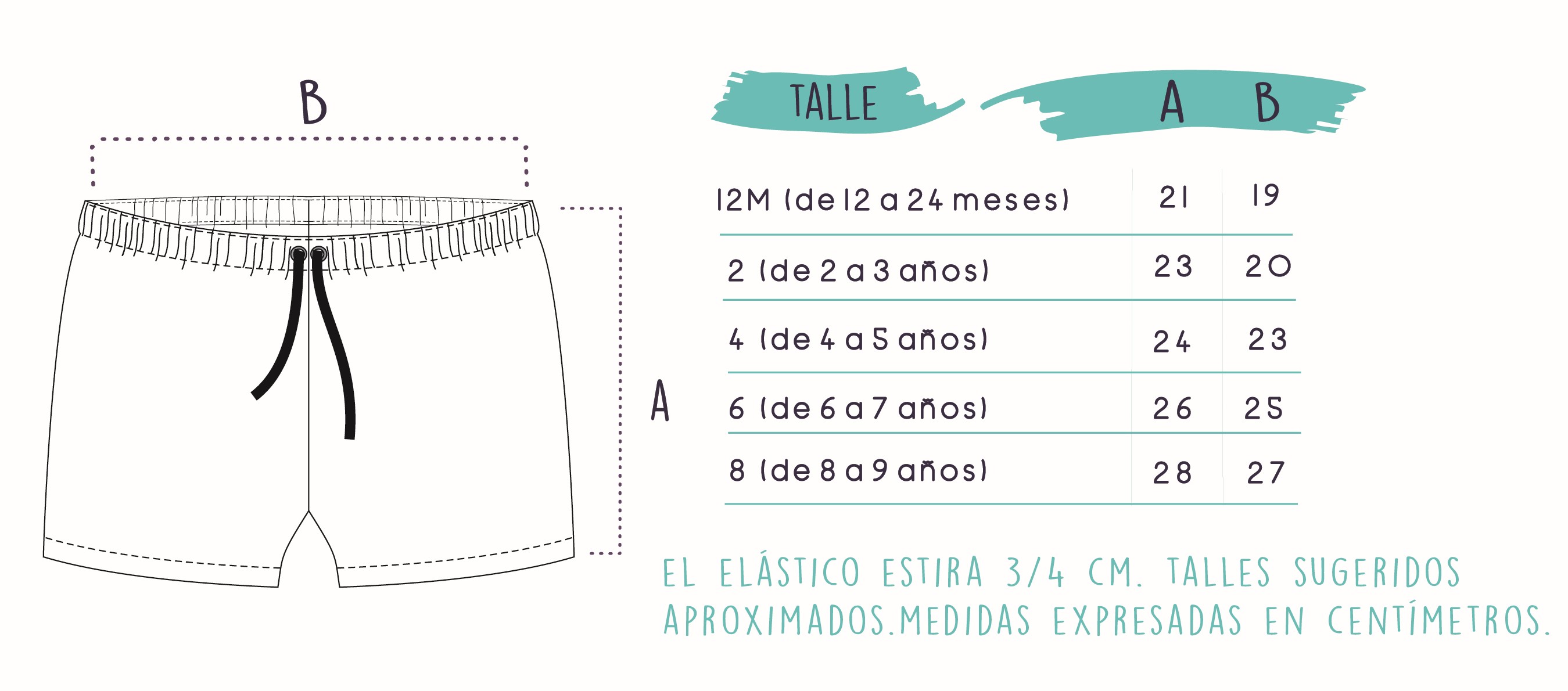 IMPORTANTE: Te recomendamos que para elegir el talle tomes en cuenta las medidas de la tabla que se encuentra a continuación y no las edades de referencia, ya que la edad es a nivel general y depende mucho de la contextura del nene. Podés medir un traje de baño que tengas y le quede bien y compararlo con nuestras medidas.